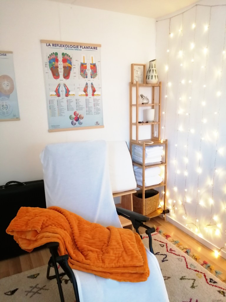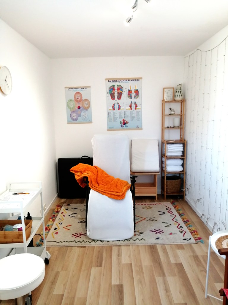 Vous découvrirez mon petit cabinet atypique au cœur de la campagne gardoise, accompagné des sons de la nature et du chants des oiseaux. Vous serez installé(e) confortablement dans un transat ou sur la table de massage. L’ambiance calme et sereine du cabinet favorise le relâchement et la connexion aux ressentis du corps.